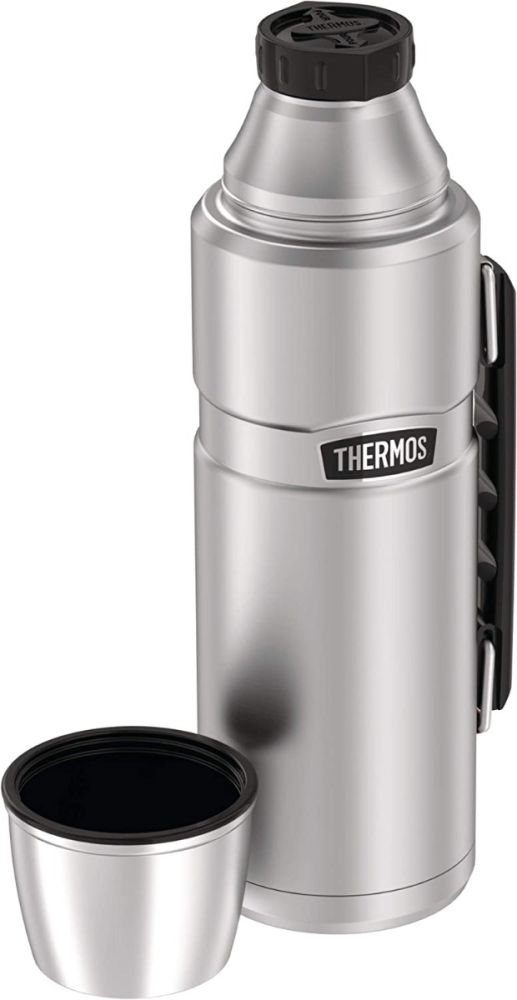 This 2L Stainless Kingâ„¢ Vacuum Insulated Flask is the perfect take-along for family camping and outdoor enthusiasts. It is constructed from a durable stainless steel design and features Thermosâ„¢ vacuum insulation, which keeps contents hot or cold for up to 24 hours. The stainless steel lid doubles as a cup, which is handy when you are out and about. The flask features an integrated handle which allows for easy carrying.